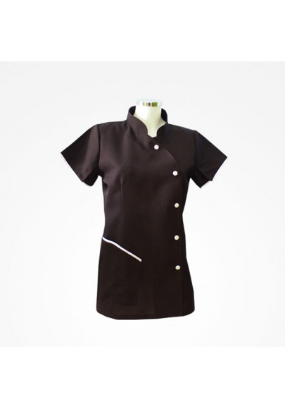 Chaqueta negra con mangas. Talla 40. Cierre con botones resistentes, un bolsillo inferior lateral. Tejido 100% polyester, anti-decoloración.