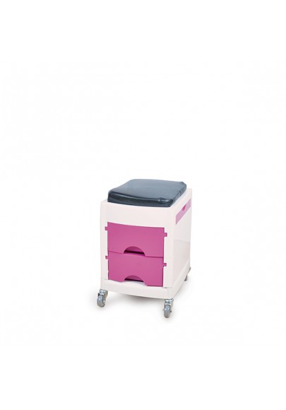 Carrito pedicura con bandeja lateral extraible y 2 cajones. Cojín y ruedecitas silenciosas para un fácil manejo.