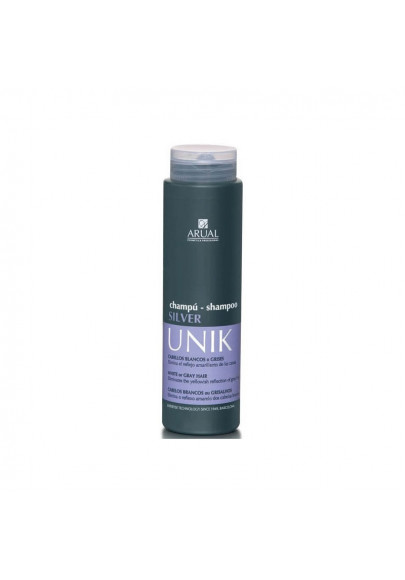 El champú Silver de Arual está diseñado para limpiar suavemente el cabello blanco o rubio claro. Contiene extracto proteico de perla y pigmentos de color perla para neutralizar los matices amarillos. Además, reestructura la fibra capilar y aporta un brillo excepcional.