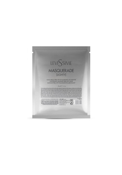 Mascarilla de alginato iluminadora formulada a base de algas pardas, arcilla blanca, flor de loto azul y extracto de guisante, con propiedades despigmentantes y antioxidantes que proporciona a la piel un tono unificado y radiante.